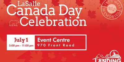 The Town of LaSalle is excited to welcome residents and visitors to the LaSalle Canada Day Celebration on Tuesday, July 1, 2025, from 5:00 pm to 11:00 pm at The Loop and the Event Centre at LaSalle Landing at 970 Front Road.