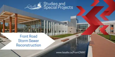 The Town will begin a storm sewer reconstruction project in the coming months along Front Road from Reaume Road to Boismier Avenue. During the project, traffic lanes will be reduced from four (4) to two (2) lanes, and turning restrictions will be in place. This project will cause major traffic delays. Alternate routes should be considered, as well as adding additional time for commutes.