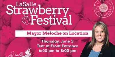 While taking in the LaSalle Strawberry Festival, say 'Hi' to Mayor Meloche. She will have a tent set up near the entrance to the festival and will be on hand to chat with residents.