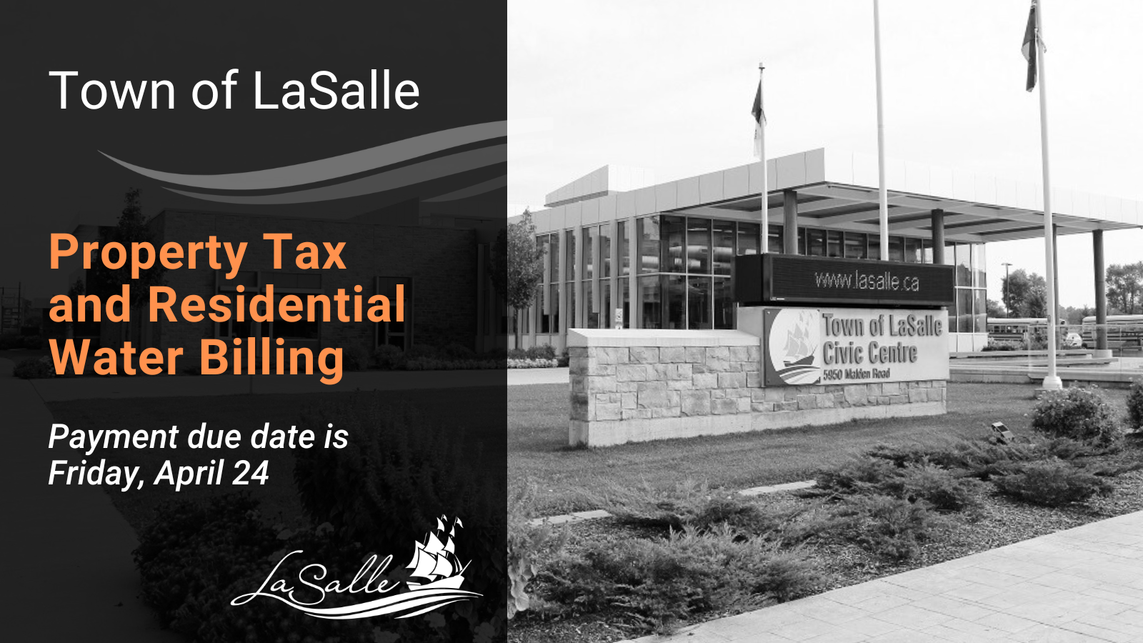 The Town of LaSalle residential quarterly water and wastewater bills are being mailed this week and are due by Friday, April 24. Interim property tax bills were mailed in February, and the second installment is due on the same date.