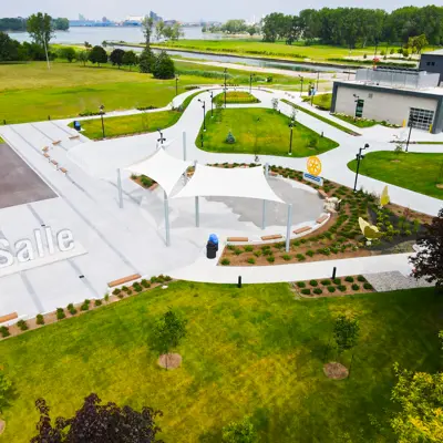 The LaSalle Landing is located along the Heritage Detroit River spanning 60 acres of waterfront property. This district is an evolving project that began in 2021. The full development will transform the area into a vibrant, year-round destination.